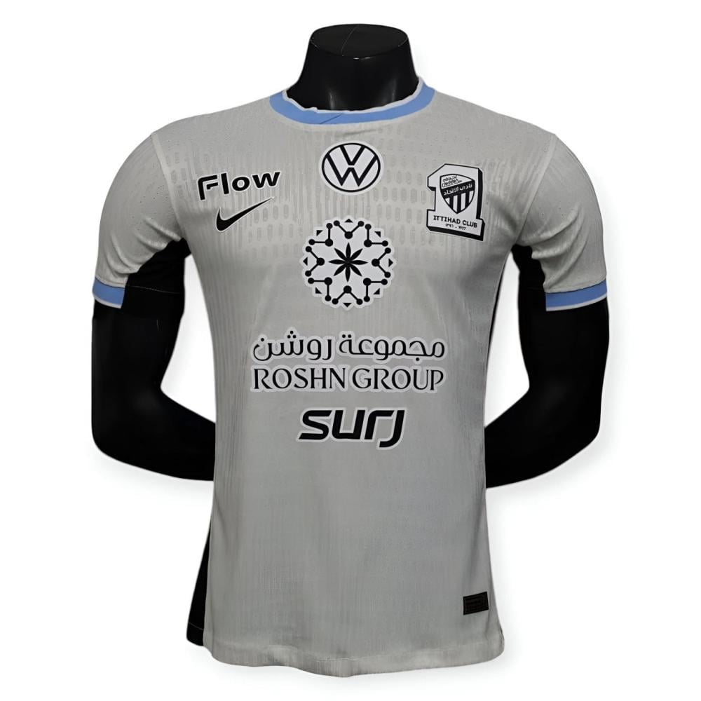 تيشيرت الاتحاد الجديد الاحتياطي للموسم 2025/2026 التيشيرت الاحتياطي باللون الرملي مع تفاصيل سماوية أنيقة متوفر بجميع المقاسات رجالية ولادية مع إمكانية طباعة الاسم والرقم خلف التيشيرت