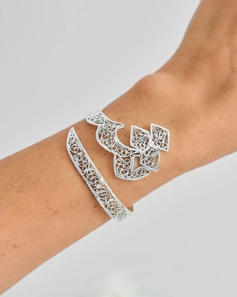 اكتشف أناقة لا تضاهى مع اسوارة وخاتم بتصميم خاص يحمل اسمك أو الاحرف التي تختارها. هذه القطع الفريدة مصنوعة من فضة خالصة عيار 925 ومطلية بدقة عالية لضمان لمعان يدوم طويلاً.